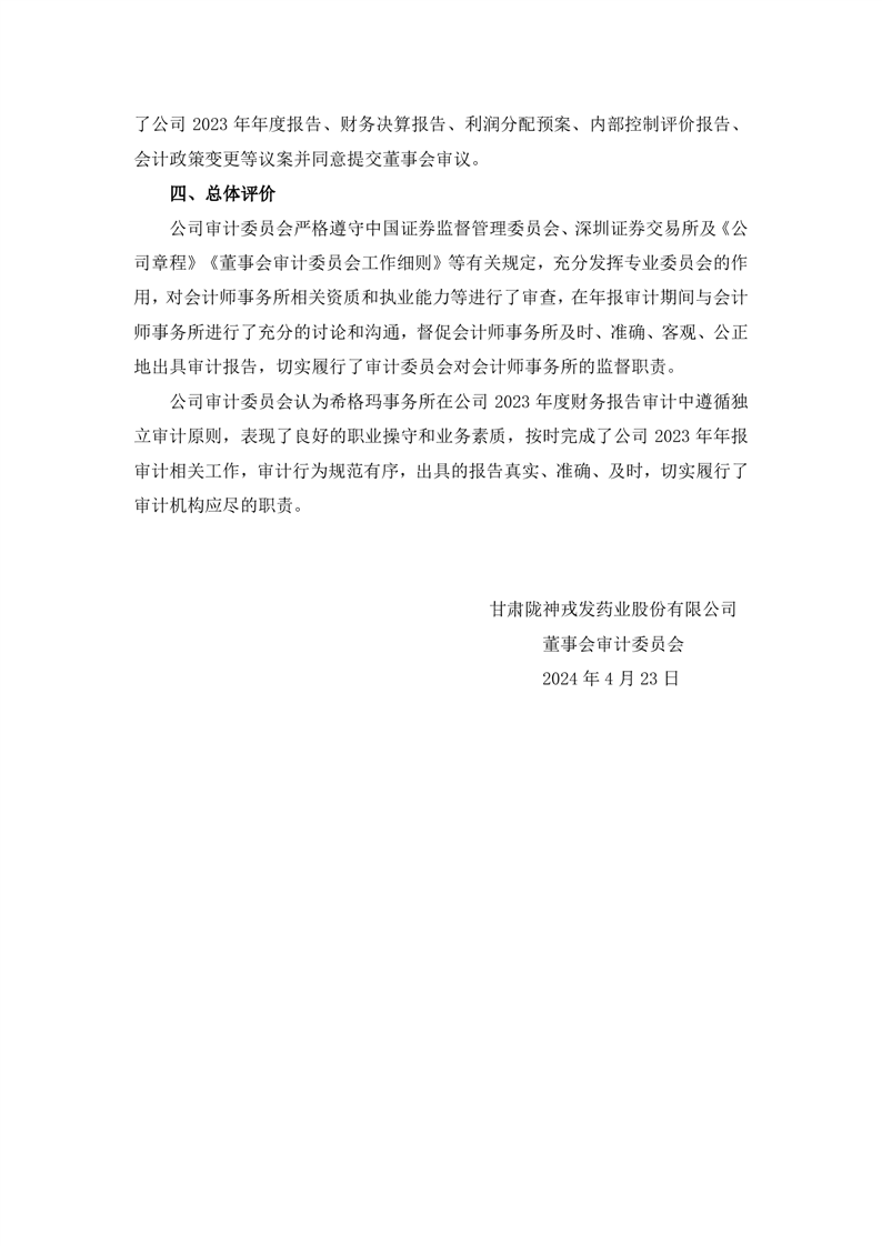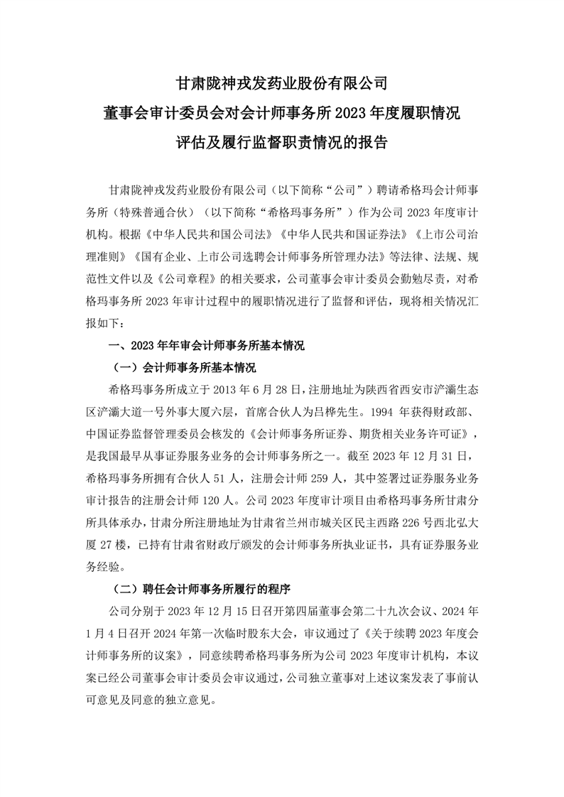 董事會審計委員會對會計師事務(wù)所2023年度履職情況評估及履行監(jiān)督職責(zé)情況的報告