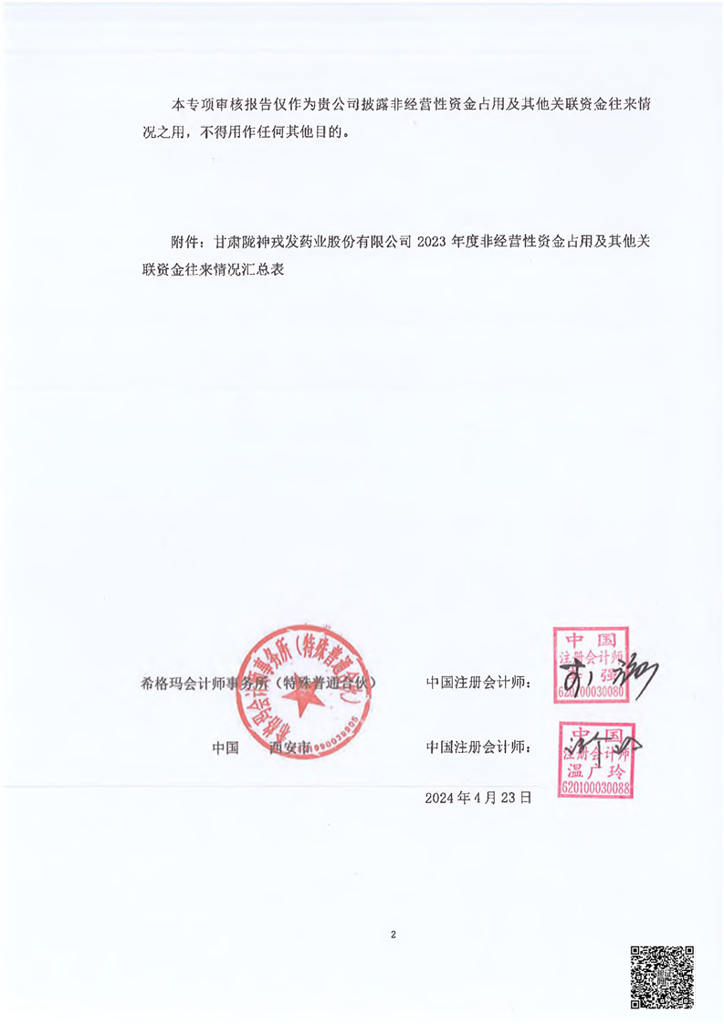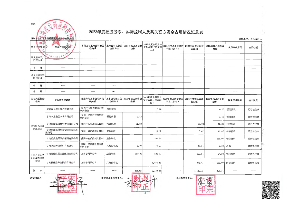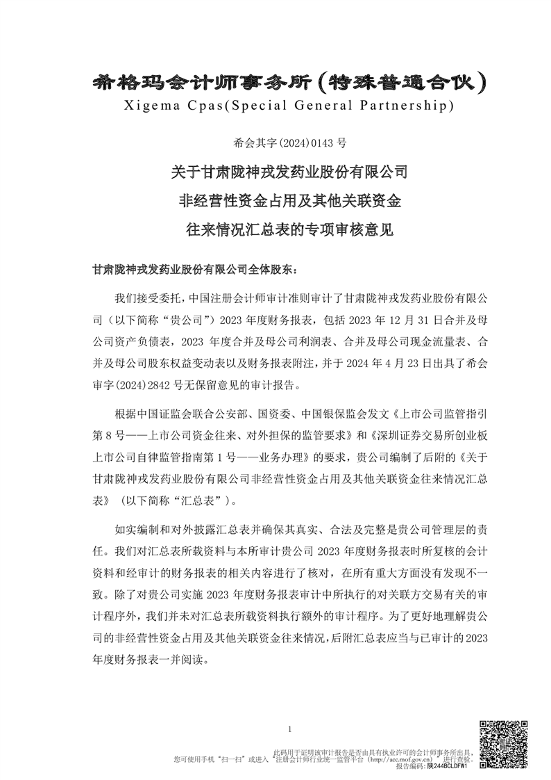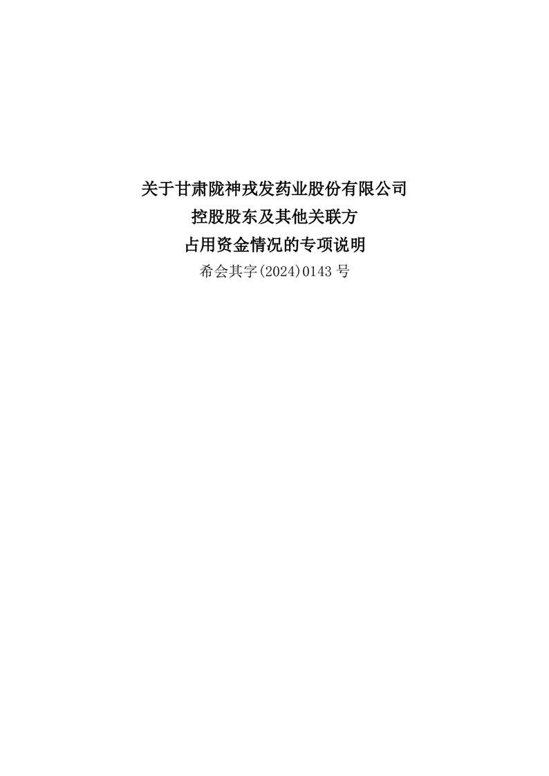 關(guān)于甘肅隴神戎發(fā)藥業(yè)股份有限公司控股股東及其他關(guān)聯(lián)方占用資金情況的專(zhuān)項(xiàng)說(shuō)明