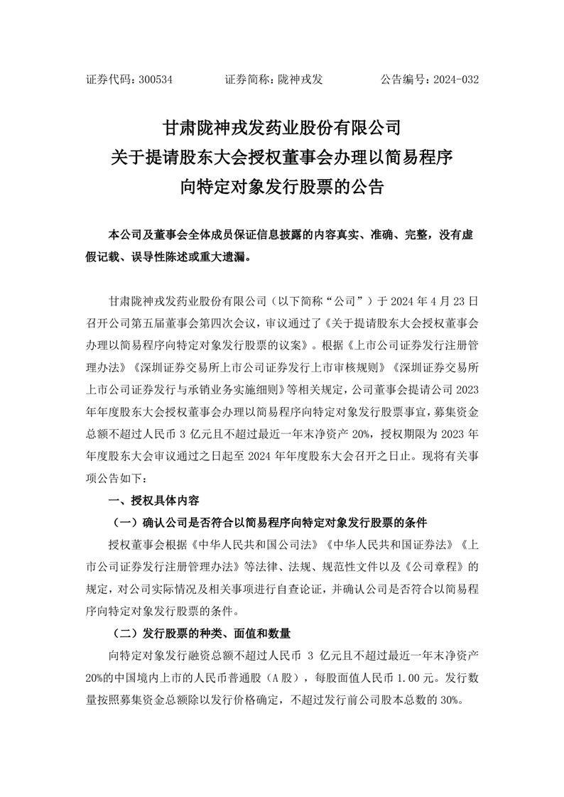 關于提請股東大會授權董事會辦理以簡易程序向特定對象發(fā)行股票的公告