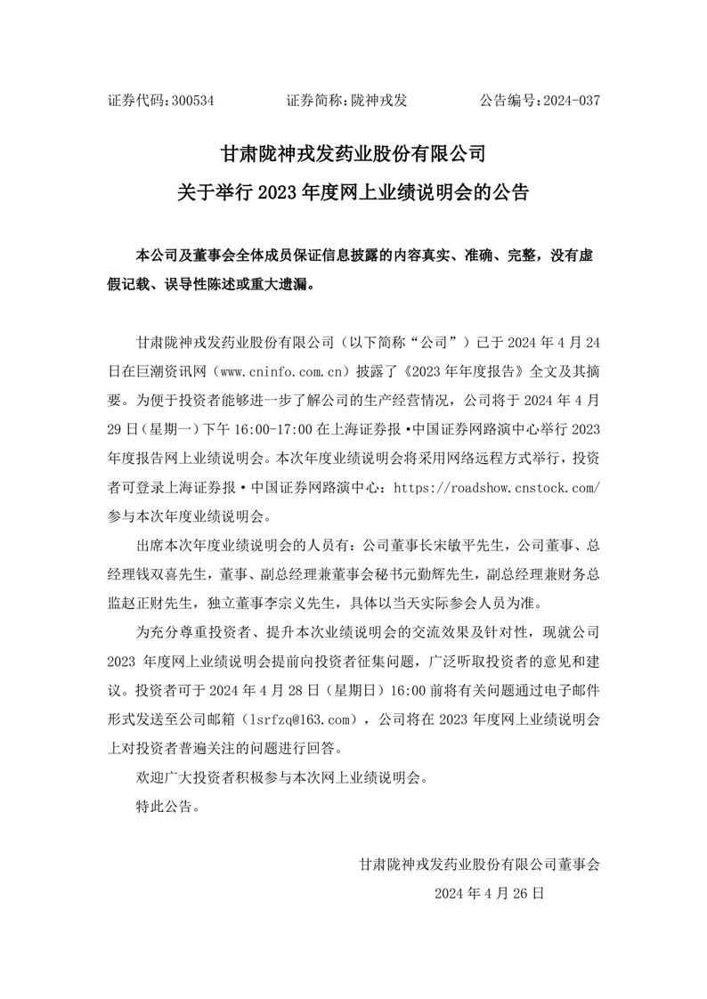 關(guān)于舉行2023年度網(wǎng)上業(yè)績(jī)說明會(huì)的公告