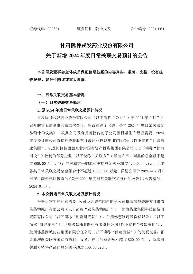 關(guān)于新增2024年度日常關(guān)聯(lián)交易預(yù)計的公告