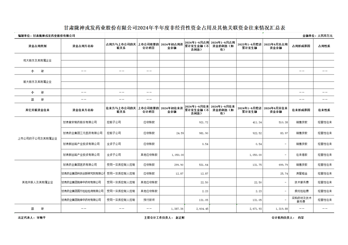 2024年半年度非經(jīng)營性資金占用及其他關(guān)聯(lián)資金往來情況匯總表