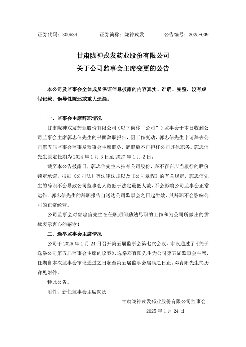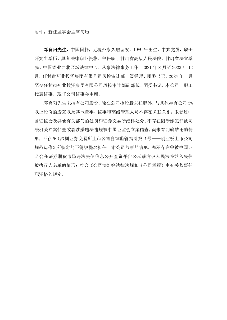 關(guān)于公司監(jiān)事會主席變更的公告