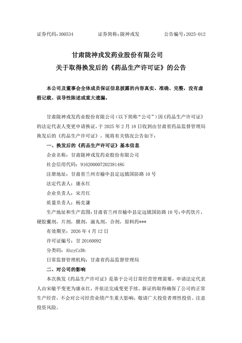 關(guān)于取得換發(fā)后的《藥品生產(chǎn)許可證》的公告