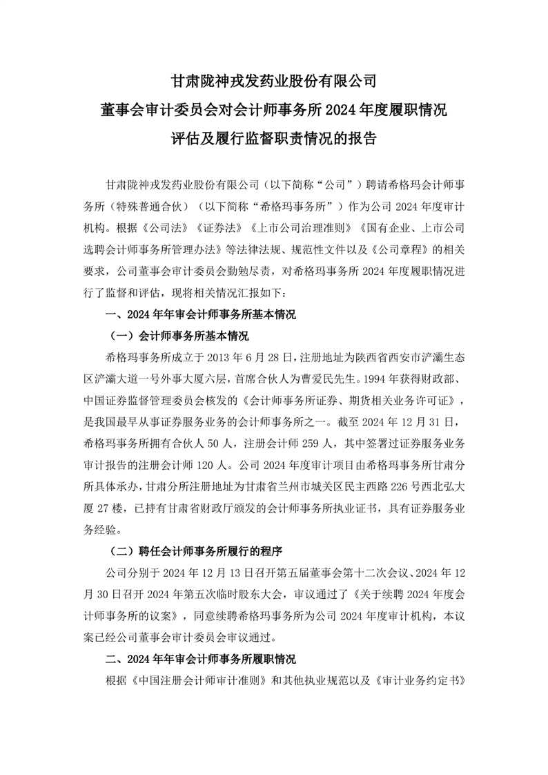 董事會(huì)審計(jì)委員會(huì)對(duì)會(huì)計(jì)師事務(wù)所2024年度履職情況評(píng)估及履行監(jiān)督職責(zé)情況的報(bào)告
