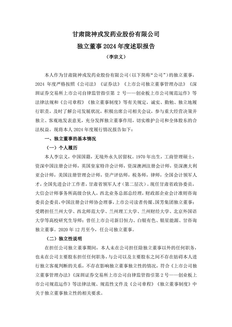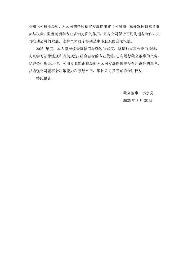 獨立董事2024年度述職報告(李宗義)