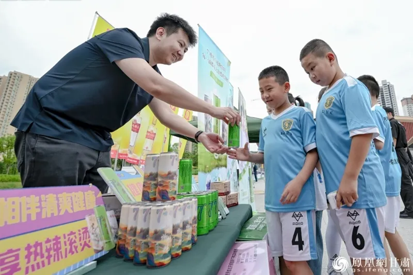 甘肅藥業(yè)集團(tuán)展區(qū)的純植物功能飲品吸引小球迷品嘗